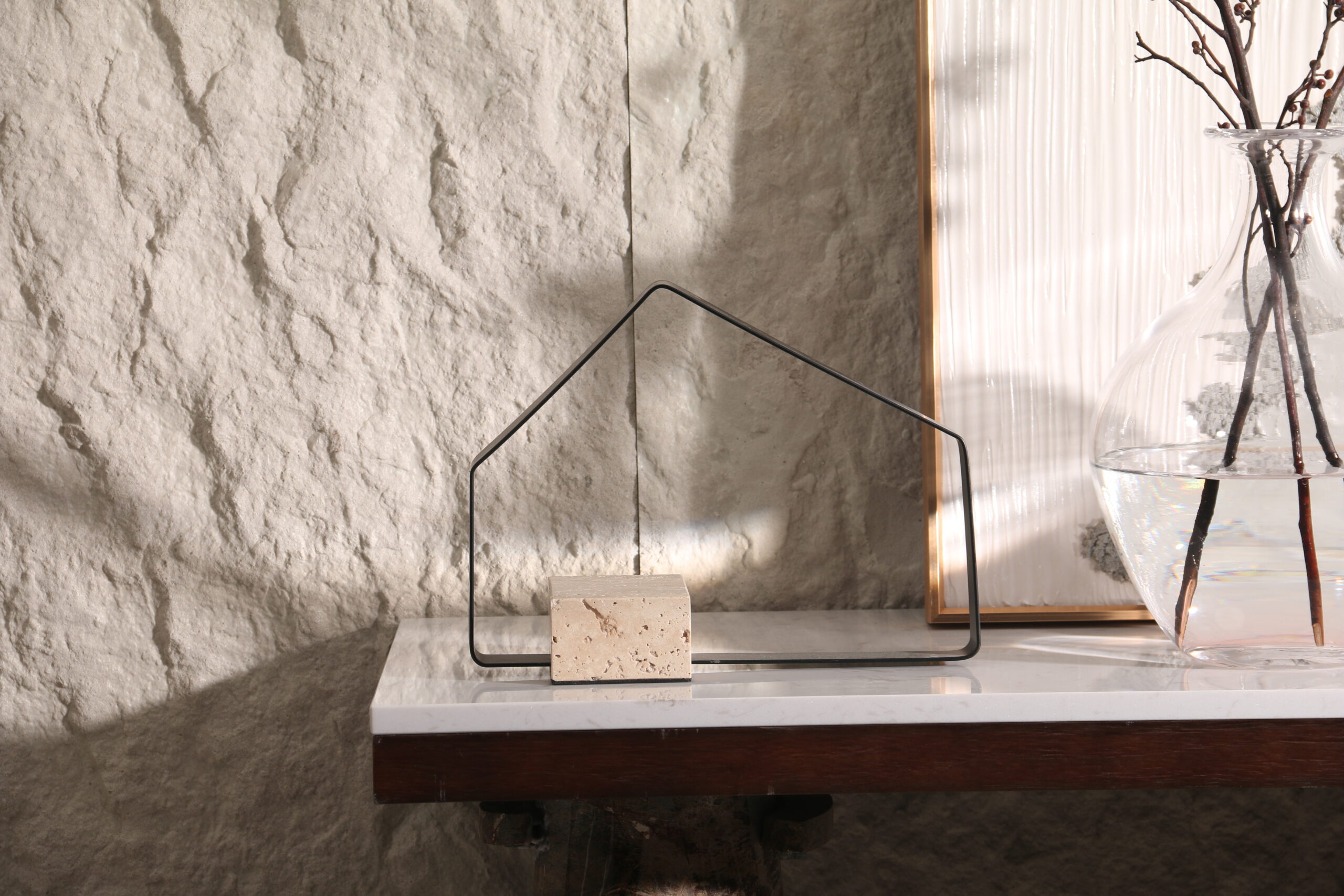This sculptural piece blends modern design with natural elegance. The sharp interplay of black and beige tones over iron and marble reflects balance and beauty. Perfect for those who appreciate contemporary aesthetics with a tactile, grounded feel.